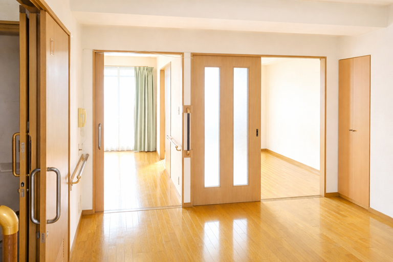 バリアフリー住宅です。全室、玄関(下足場)から含め、室内に段差は無く、