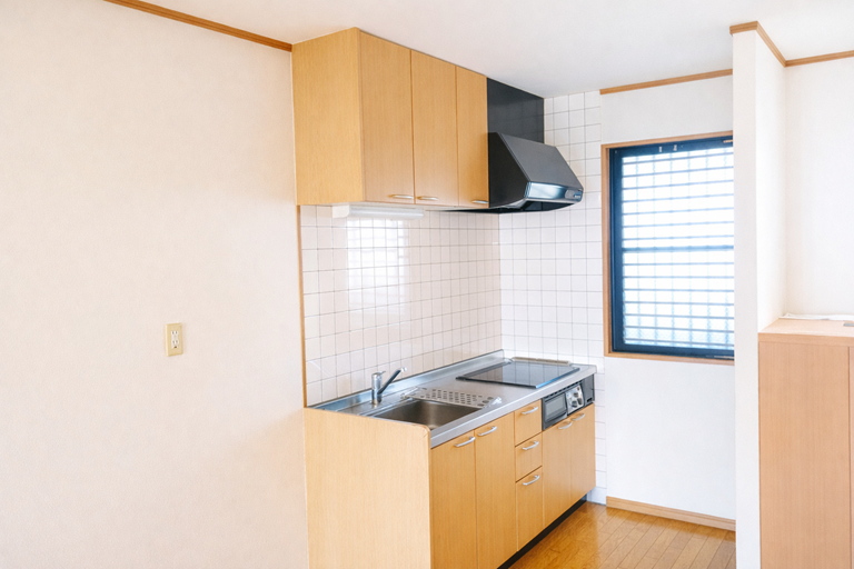 ⑧ 1LDK居室・玄関側よりLDKキッチンスペースを見る